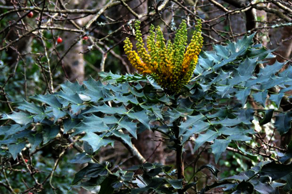 ⇒Cây Mật gấu hay còn gọi là (Hoàng liên ô rô, Mã hồ ) có thể cao 4 – 6m. Lá kép hình lông chim lẻ, mọc so le, dài 20 – 40 cm, mang 11 – 25 lá chét cứng không cuống, hình trái xoan hẹp, dài 6 – 10cm, rộng 2 – 4,5cm, gốc tròn, đầu lá nhọn như gai, mép có răng nhọn; gân chính 3.